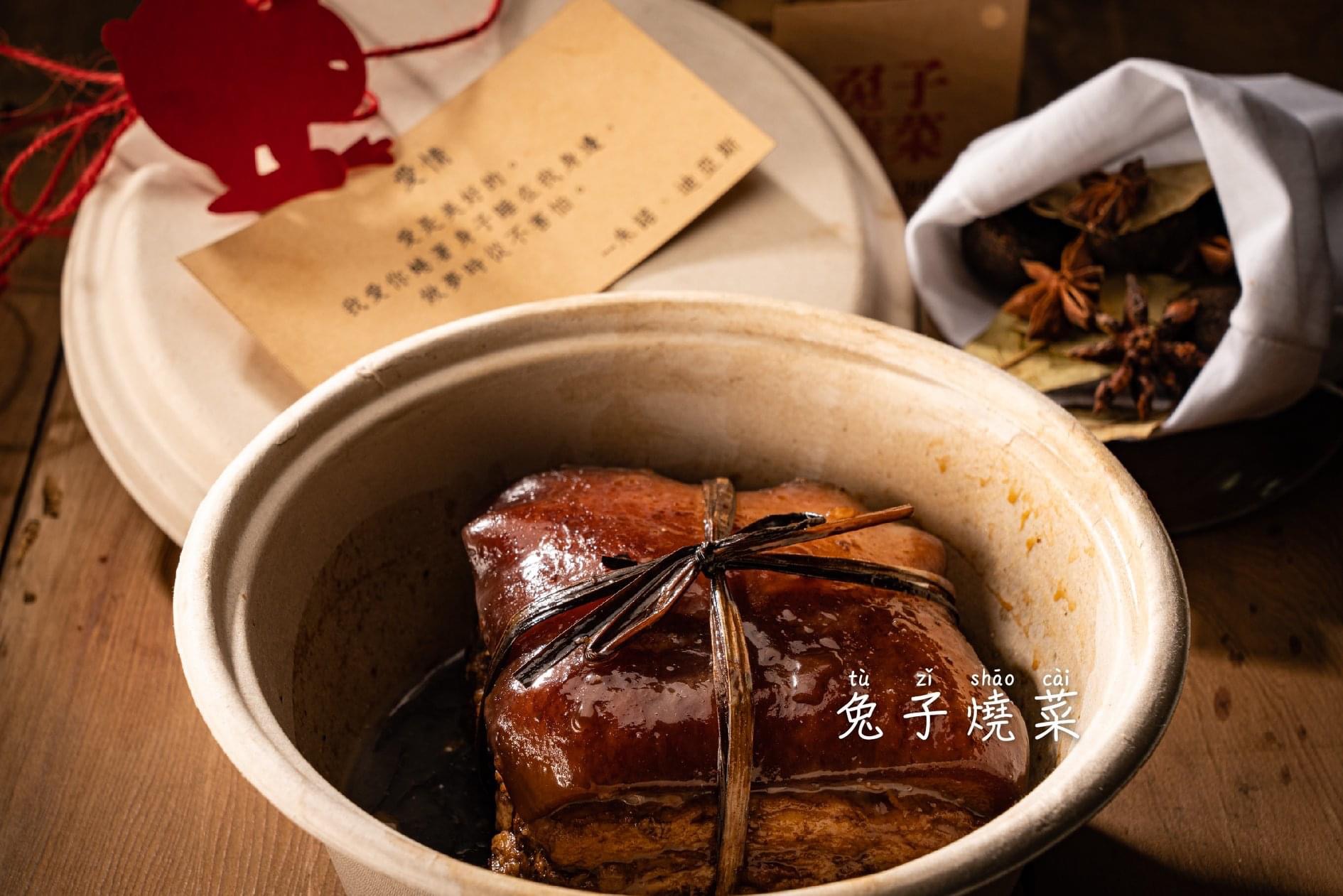 採用溫體五花肉製作,特製的兔子家傳滷製醬料,主以茶香佐料,再以三日浸泡入味。有故事味的茶香東坡肉,在兔子的朋友群,傳香許久!